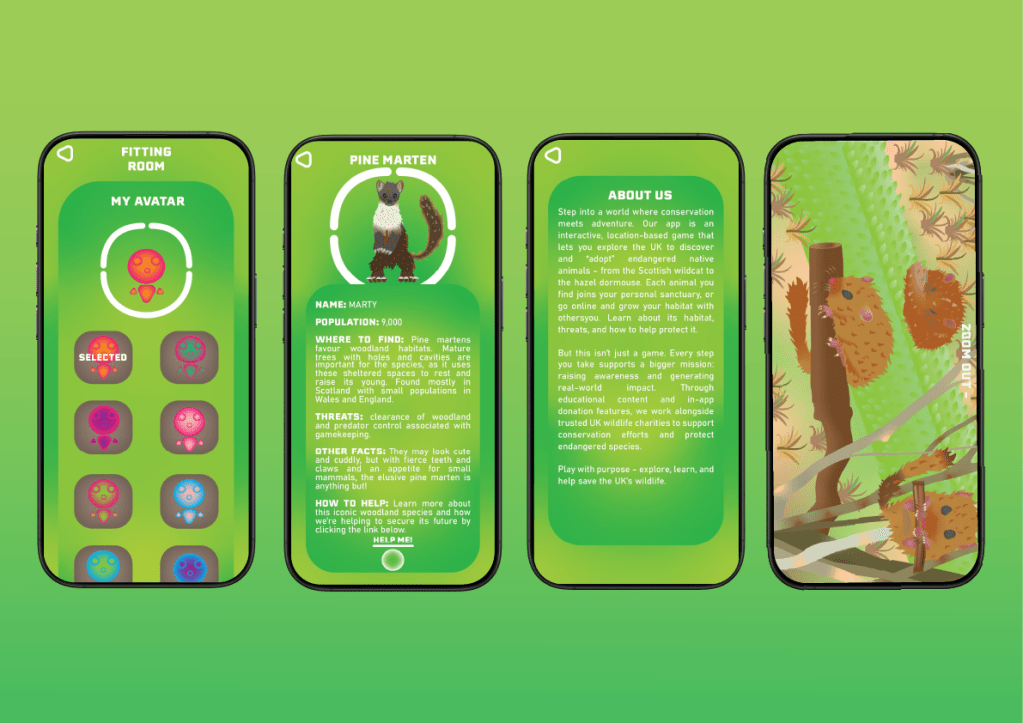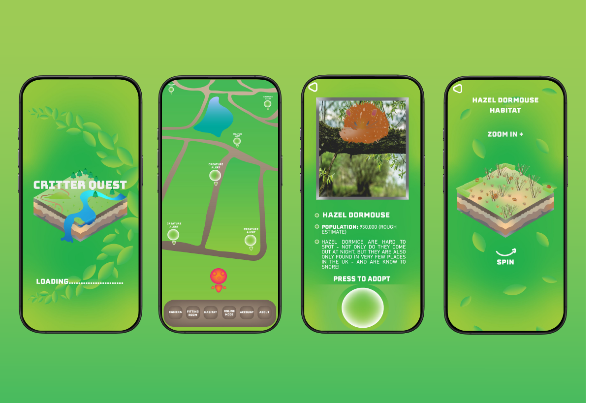 Here is my app idea, Critter Quest. Critter Quest is a mobile app that allows you to travel around the UK to find and adopt endangered animals. You’ll watch your new friends live and grow in their expanding habitats. You’ll also learn ways to help protect these rare animals.